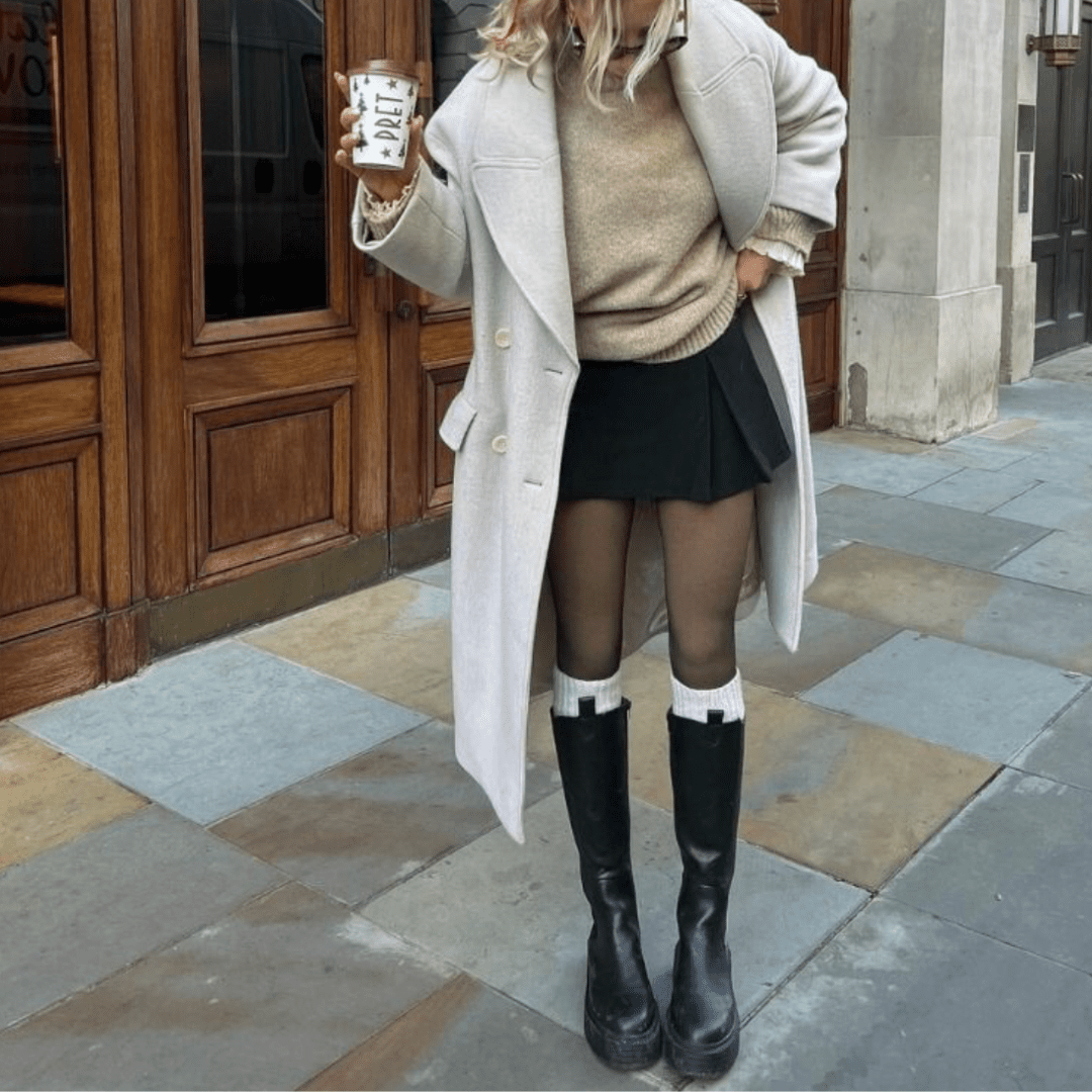 Lange sokken zijn dit najaar helemaal terug, vooral als je ze boven je laarzen laat uitsteken. Ze zijn perfect voor een speelse, winterse look en houden je benen heerlijk warm.