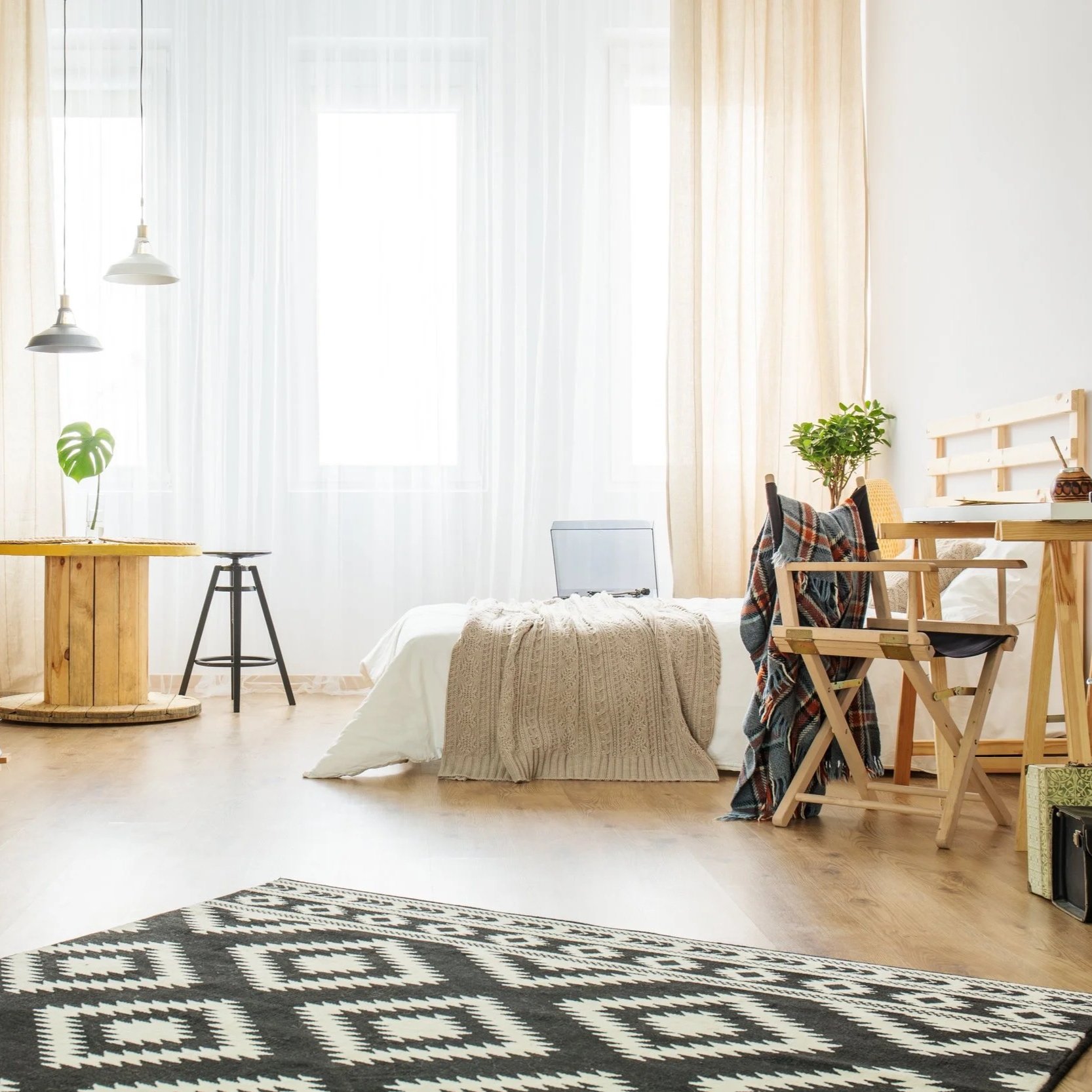In een kleine ruimte kun je zones creëren om verschillende functies te scheiden. Gebruik een roomdivider, een vloerkleed of een accentmuur om de woonkamer, eethoek en slaapruimte van elkaar te onderscheiden. Dit helpt om een gevoel van organisatie te behouden. Denk bijvoorbeeld aan een boekenrek als scheidingswand tussen de woonkamer en de slaapkamer om visueel onderscheid te maken tussen de twee gebieden.